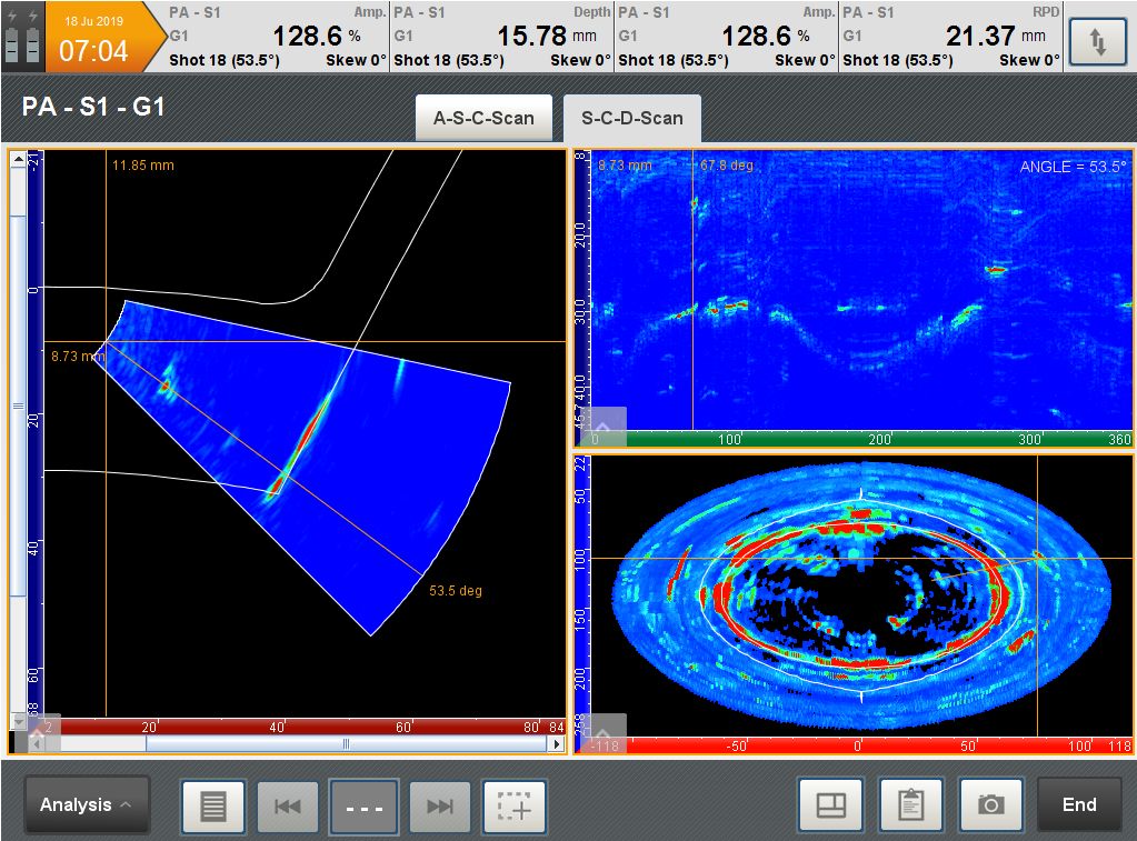 采用128晶元孔径针对厚壁焊缝和CRA复合不锈钢管道对接焊缝检测